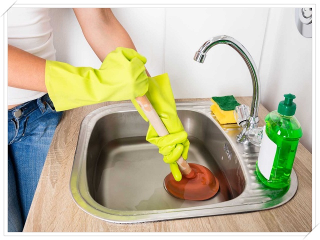 Không quá khó để sử dụng pittong cao su để làm sạch đường ống của bồn rửa, chỉ cần xả nước thật nhiều cho đến khi nào chậu rửa bát đầy nước thì bạn mới tiến hành công việc.